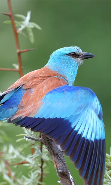 Le Rollier d'Europe est la seule espèce de la famille des coraciidés à vivre en France.