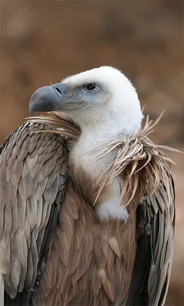 Son cou est recouvert d’un léger duvet blanc. Ces plumes particulières sont plus faciles à nettoyer après qu’il a plongé́ son cou dans une carcasse. Lors de la curée, une cinquantaine de vautours éliminent une carcasse de brebis en une quinzaine de minutes.