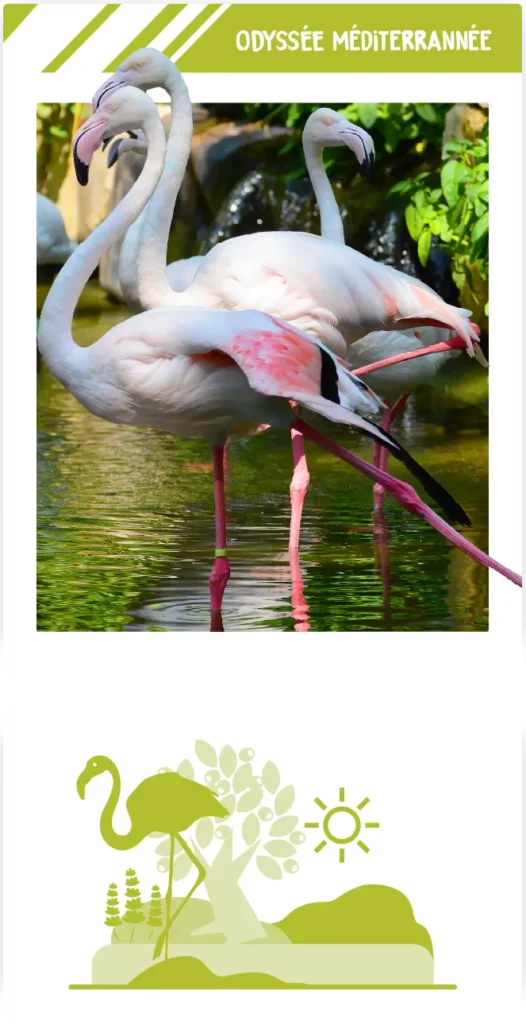 Entre les parfums de la garrigue, les silhouettes des flamants roses et la présence surprenante des magots, l’Odyssée Méditerranée propose un voyage initiatique qui met les sens en éveil et célèbre la richesse des milieux du Sud.